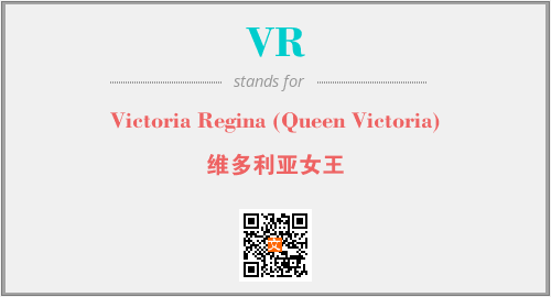 以上为Victoria Regina (Queen Victoria)英文缩略词VR的中文解释,以及该英文缩写在英语的流行度、分类和应用领域方面的信息。