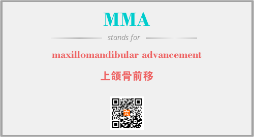 上述内容是“maxillomandibular advancement”作为“MMA”的缩写,解释为“上颌骨前移”时的信息,以及英文缩略词MMA所代表的英文单词,其对应的中文拼音、详细解释以及在英文中的流行度和相关分类、应用领域及应用示例等。