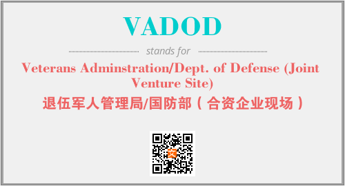 英文缩略词“VADOD”经常作为“Veterans Adminstration/Dept. of Defense (Joint Venture Site)”的英文缩写来使用,中文表示:“退伍军人管理局/国防部(合资企业现场)”。本文将详细介绍英文缩写词VADOD所代表英文单词,其对应的中文拼音、详细解释以及在英语中的流行度。此外,还有关于缩略词VADOD的分类、应用领域及相关应用示例等。