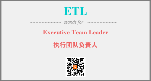 英文缩略词“ETL”经常作为“Executive Team Leader”的英文缩写来使用,中文表示:“执行团队负责人”。本文将详细介绍英文缩写词ETL所代表英文单词,其对应的中文拼音、详细解释以及在英语中的流行度。此外,还有关于缩略词ETL的分类、应用领域及相关应用示例等。