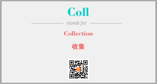 上述内容是“Collection”作为“Coll”的缩写,解释为“收集”时的信息,以及英文缩略词Coll所代表的英文单词,其对应的中文拼音、详细解释以及在英文中的流行度和相关分类、应用领域及应用示例等。