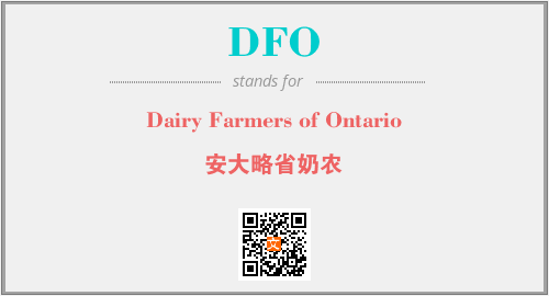 上述内容是“Dairy Farmers of Ontario”作为“DFO”的缩写,解释为“安大略省奶农”时的信息,以及英文缩略词DFO所代表的英文单词,其对应的中文拼音、详细解释以及在英文中的流行度和相关分类、应用领域及应用示例等。