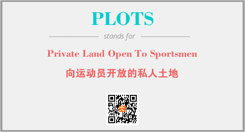 英文缩略词“PLOTS”经常作为“Private Land Open To Sportsmen”的英文缩写来使用,中文表示:“向运动员开放的私人土地”。本文将详细介绍英文缩写词PLOTS所代表英文单词,其对应的中文拼音、详细解释以及在英语中的流行度。此外,还有关于缩略词PLOTS的分类、应用领域及相关应用示例等。