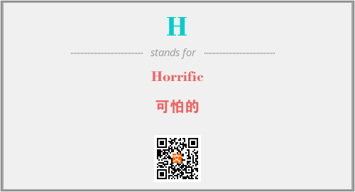 上述内容是“Horrific”作为“H”的缩写,解释为“可怕的”时的信息,以及英文缩略词H所代表的英文单词,其对应的中文拼音、详细解释以及在英文中的流行度和相关分类、应用领域及应用示例等。