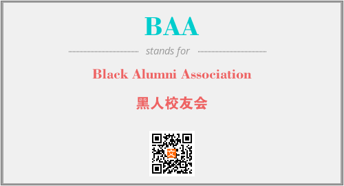 英文缩略词“BAA”经常作为“Black Alumni Association”的英文缩写来使用,中文表示:“黑人校友会”。本文将详细介绍英文缩写词BAA所代表英文单词,其对应的中文拼音、详细解释以及在英语中的流行度。此外,还有关于缩略词BAA的分类、应用领域及相关应用示例等。
