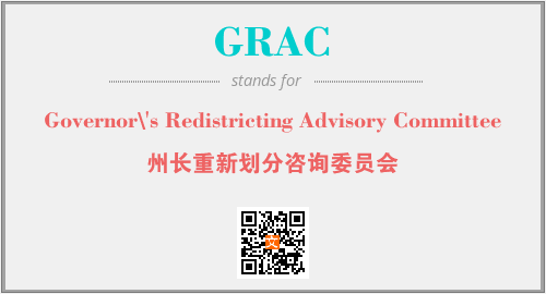 上述内容是“Governor\'s Redistricting Advisory Committee”作为“GRAC”的缩写,解释为“州长重新划分咨询委员会”时的信息,以及英文缩略词GRAC所代表的英文单词,其对应的中文拼音、详细解释以及在英文中的流行度和相关分类、应用领域及应用示例等。