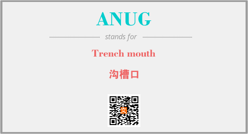 上述内容是“Trench mouth”作为“ANUG”的缩写,解释为“沟槽口”时的信息,以及英文缩略词ANUG所代表的英文单词,其对应的中文拼音、详细解释以及在英文中的流行度和相关分类、应用领域及应用示例等。