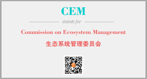 英文缩略词“CEM”经常作为“Commission on Ecosystem Management”的英文缩写来使用,中文表示:“生态系统管理委员会”。本文将详细介绍英文缩写词CEM所代表英文单词,其对应的中文拼音、详细解释以及在英语中的流行度。此外,还有关于缩略词CEM的分类、应用领域及相关应用示例等。