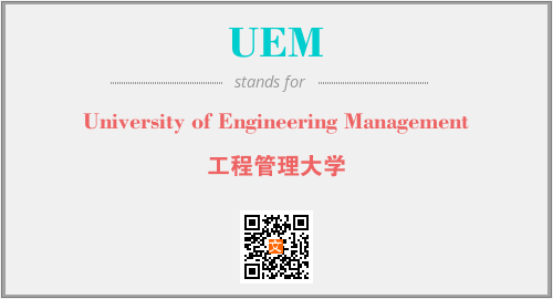 英文缩略词“UEM”经常作为“University of Engineering Management”的英文缩写来使用,中文表示:“工程管理大学”。本文将详细介绍英文缩写词UEM所代表英文单词,其对应的中文拼音、详细解释以及在英语中的流行度。此外,还有关于缩略词UEM的分类、应用领域及相关应用示例等。