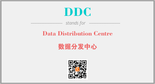 英文缩略词“DDC”经常作为“Data Distribution Centre”的英文缩写来使用,中文表示:“数据分发中心”。本文将详细介绍英文缩写词DDC所代表英文单词,其对应的中文拼音、详细解释以及在英语中的流行度。此外,还有关于缩略词DDC的分类、应用领域及相关应用示例等。