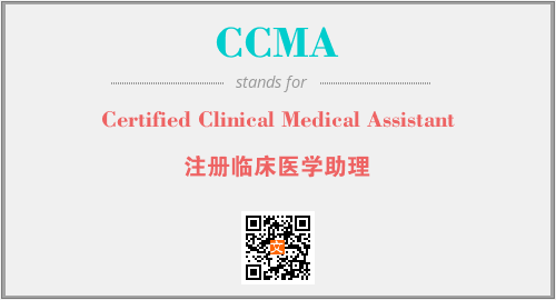 上述内容是“Certified Clinical Medical Assistant”作为“CCMA”的缩写,解释为“注册临床医学助理”时的信息,以及英文缩略词CCMA所代表的英文单词,其对应的中文拼音、详细解释以及在英文中的流行度和相关分类、应用领域及应用示例等。