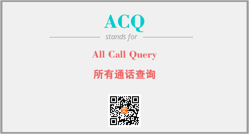 英文缩略词“ACQ”经常作为“All Call Query”的英文缩写来使用,中文表示:“所有通话查询”。本文将详细介绍英文缩写词ACQ所代表英文单词,其对应的中文拼音、详细解释以及在英语中的流行度。此外,还有关于缩略词ACQ的分类、应用领域及相关应用示例等。