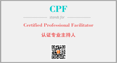 上述内容是“Certified Professional Facilitator”作为“CPF”的缩写,解释为“认证专业主持人”时的信息,以及英文缩略词CPF所代表的英文单词,其对应的中文拼音、详细解释以及在英文中的流行度和相关分类、应用领域及应用示例等。