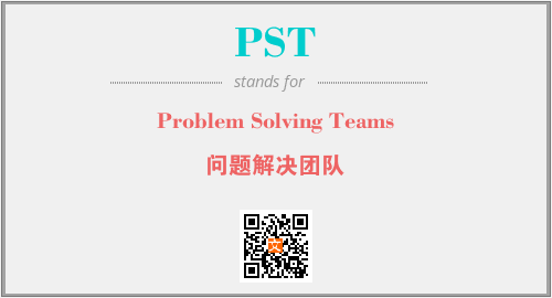 英文缩略词“PST”经常作为“Problem Solving Teams”的英文缩写来使用,中文表示:“问题解决团队”。本文将详细介绍英文缩写词PST所代表英文单词,其对应的中文拼音、详细解释以及在英语中的流行度。此外,还有关于缩略词PST的分类、应用领域及相关应用示例等。