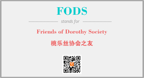 上述内容是“Friends of Dorothy Society”作为“FODS”的缩写,解释为“桃乐丝协会之友”时的信息,以及英文缩略词FODS所代表的英文单词,其对应的中文拼音、详细解释以及在英文中的流行度和相关分类、应用领域及应用示例等。