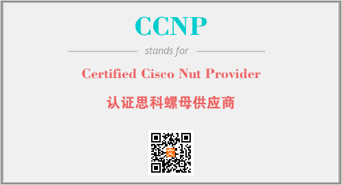 上述内容是“Certified Cisco Nut Provider”作为“CCNP”的缩写,解释为“认证思科螺母供应商”时的信息,以及英文缩略词CCNP所代表的英文单词,其对应的中文拼音、详细解释以及在英文中的流行度和相关分类、应用领域及应用示例等。