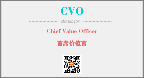 上述内容是“Chief Value Officer”作为“CVO”的缩写,解释为“首席价值官”时的信息,以及英文缩略词CVO所代表的英文单词,其对应的中文拼音、详细解释以及在英文中的流行度和相关分类、应用领域及应用示例等。