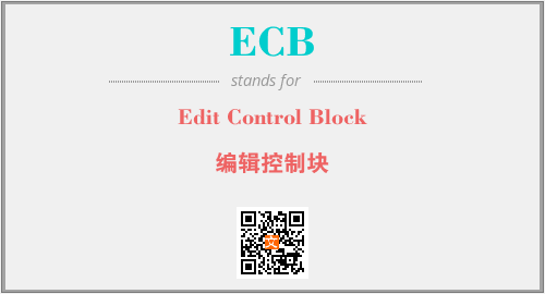 英文缩略词“ECB”经常作为“Edit Control Block”的英文缩写来使用,中文表示:“编辑控制块”。本文将详细介绍英文缩写词ECB所代表英文单词,其对应的中文拼音、详细解释以及在英语中的流行度。此外,还有关于缩略词ECB的分类、应用领域及相关应用示例等。