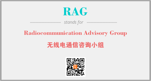 上述内容是“Radiocommunication Advisory Group”作为“RAG”的缩写,解释为“无线电通信咨询小组”时的信息,以及英文缩略词RAG所代表的英文单词,其对应的中文拼音、详细解释以及在英文中的流行度和相关分类、应用领域及应用示例等。