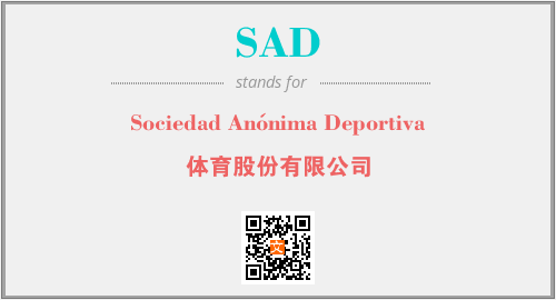 英文缩略词“SAD”经常作为“Sociedad Anónima Deportiva”的英文缩写来使用,中文表示:“体育股份有限公司”。本文将详细介绍英文缩写词SAD所代表英文单词,其对应的中文拼音、详细解释以及在英语中的流行度。此外,还有关于缩略词SAD的分类、应用领域及相关应用示例等。