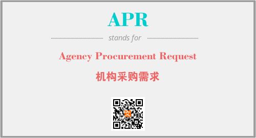 英文缩略词“APR”经常作为“Agency Procurement Request”的英文缩写来使用,中文表示:“机构采购需求”。本文将详细介绍英文缩写词APR所代表英文单词,其对应的中文拼音、详细解释以及在英语中的流行度。此外,还有关于缩略词APR的分类、应用领域及相关应用示例等。