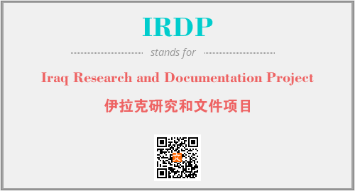 英文缩略词“IRDP”经常作为“Iraq Research and Documentation Project”的英文缩写来使用,中文表示:“伊拉克研究和文件项目”。本文将详细介绍英文缩写词IRDP所代表英文单词,其对应的中文拼音、详细解释以及在英语中的流行度。此外,还有关于缩略词IRDP的分类、应用领域及相关应用示例等。