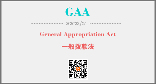 以上为General Appropriation Act英文缩略词GAA的中文解释,以及该英文缩写在英语的流行度、分类和应用领域方面的信息。
