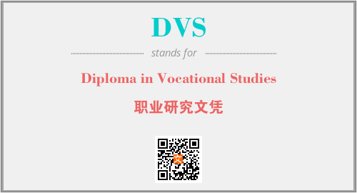 上述内容是“Diploma in Vocational Studies”作为“DVS”的缩写,解释为“职业研究文凭”时的信息,以及英文缩略词DVS所代表的英文单词,其对应的中文拼音、详细解释以及在英文中的流行度和相关分类、应用领域及应用示例等。