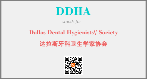 英文缩略词“DDHA”经常作为“Dallas Dental Hygienists\' Society”的英文缩写来使用,中文表示:“达拉斯牙科卫生学家协会”。本文将详细介绍英文缩写词DDHA所代表英文单词,其对应的中文拼音、详细解释以及在英语中的流行度。此外,还有关于缩略词DDHA的分类、应用领域及相关应用示例等。