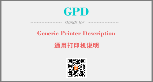 英文缩略词“GPD”经常作为“Generic Printer Description”的英文缩写来使用,中文表示:“通用打印机说明”。本文将详细介绍英文缩写词GPD所代表英文单词,其对应的中文拼音、详细解释以及在英语中的流行度。此外,还有关于缩略词GPD的分类、应用领域及相关应用示例等。