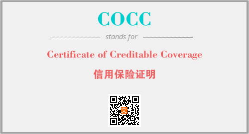 上述内容是“Certificate of Creditable Coverage”作为“COCC”的缩写,解释为“信用保险证明”时的信息,以及英文缩略词COCC所代表的英文单词,其对应的中文拼音、详细解释以及在英文中的流行度和相关分类、应用领域及应用示例等。
