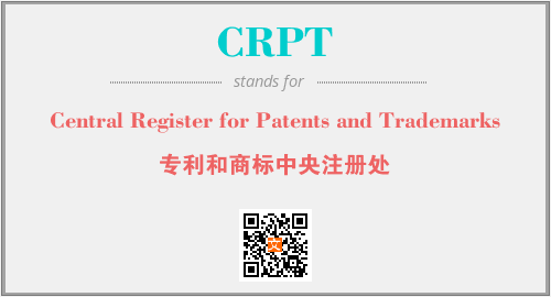上述内容是“Central Register for Patents and Trademarks”作为“CRPT”的缩写,解释为“专利和商标中央注册处”时的信息,以及英文缩略词CRPT所代表的英文单词,其对应的中文拼音、详细解释以及在英文中的流行度和相关分类、应用领域及应用示例等。