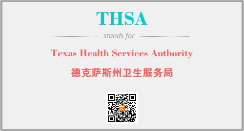 上述内容是“Texas Health Services Authority”作为“THSA”的缩写,解释为“德克萨斯州卫生服务局”时的信息,以及英文缩略词THSA所代表的英文单词,其对应的中文拼音、详细解释以及在英文中的流行度和相关分类、应用领域及应用示例等。
