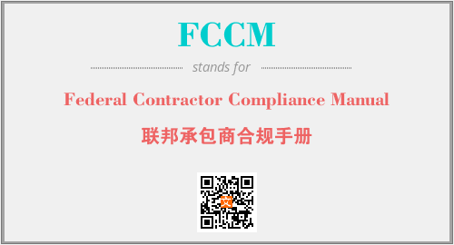 英文缩略词“FCCM”经常作为“Federal Contractor Compliance Manual”的英文缩写来使用,中文表示:“联邦承包商合规手册”。本文将详细介绍英文缩写词FCCM所代表英文单词,其对应的中文拼音、详细解释以及在英语中的流行度。此外,还有关于缩略词FCCM的分类、应用领域及相关应用示例等。