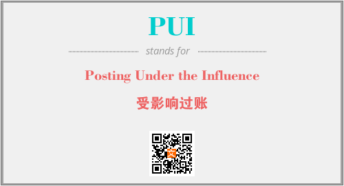 上述内容是“Posting Under the Influence”作为“PUI”的缩写,解释为“受影响过账”时的信息,以及英文缩略词PUI所代表的英文单词,其对应的中文拼音、详细解释以及在英文中的流行度和相关分类、应用领域及应用示例等。