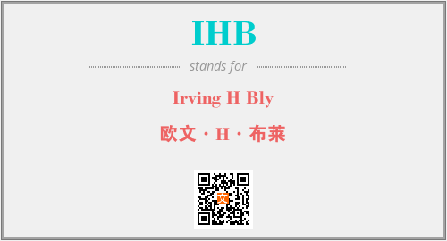 上述内容是“Irving H Bly”作为“IHB”的缩写,解释为“欧文·H·布莱”时的信息,以及英文缩略词IHB所代表的英文单词,其对应的中文拼音、详细解释以及在英文中的流行度和相关分类、应用领域及应用示例等。