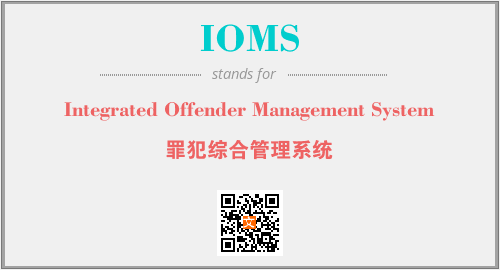 英文缩略词“IOMS”经常作为“Integrated Offender Management System”的英文缩写来使用,中文表示:“罪犯综合管理系统”。本文将详细介绍英文缩写词IOMS所代表英文单词,其对应的中文拼音、详细解释以及在英语中的流行度。此外,还有关于缩略词IOMS的分类、应用领域及相关应用示例等。