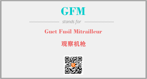 英文缩略词“GFM”经常作为“Guet Fusil Mitrailleur”的英文缩写来使用,中文表示:“观察机枪”。本文将详细介绍英文缩写词GFM所代表英文单词,其对应的中文拼音、详细解释以及在英语中的流行度。此外,还有关于缩略词GFM的分类、应用领域及相关应用示例等。
