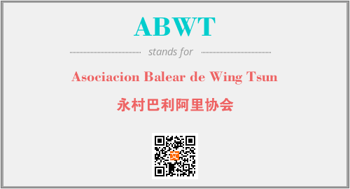 英文缩略词“ABWT”经常作为“Asociacion Balear de Wing Tsun”的英文缩写来使用,中文表示:“永村巴利阿里协会”。本文将详细介绍英文缩写词ABWT所代表英文单词,其对应的中文拼音、详细解释以及在英语中的流行度。此外,还有关于缩略词ABWT的分类、应用领域及相关应用示例等。