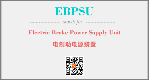 英文缩略词“EBPSU”经常作为“Electric Brake Power Supply Unit”的英文缩写来使用,中文表示:“电制动电源装置”。本文将详细介绍英文缩写词EBPSU所代表英文单词,其对应的中文拼音、详细解释以及在英语中的流行度。此外,还有关于缩略词EBPSU的分类、应用领域及相关应用示例等。