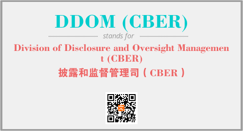 上述内容是“Division of Disclosure and Oversight Management (CBER)”作为“DDOM (CBER)”的缩写,解释为“披露和监督管理司(CBER)”时的信息,以及英文缩略词DDOM (CBER)所代表的英文单词,其对应的中文拼音、详细解释以及在英文中的流行度和相关分类、应用领域及应用示例等。