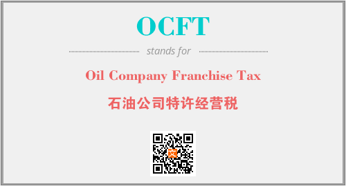 上述内容是“Oil Company Franchise Tax”作为“OCFT”的缩写,解释为“石油公司特许经营税”时的信息,以及英文缩略词OCFT所代表的英文单词,其对应的中文拼音、详细解释以及在英文中的流行度和相关分类、应用领域及应用示例等。