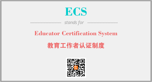 英文缩略词“ECS”经常作为“Educator Certification System”的英文缩写来使用,中文表示:“教育工作者认证制度”。本文将详细介绍英文缩写词ECS所代表英文单词,其对应的中文拼音、详细解释以及在英语中的流行度。此外,还有关于缩略词ECS的分类、应用领域及相关应用示例等。