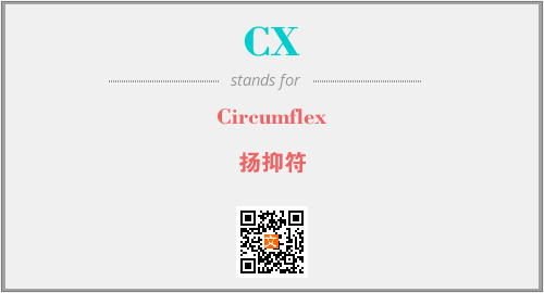 上述内容是“Circumflex”作为“CX”的缩写,解释为“扬抑符”时的信息,以及英文缩略词CX所代表的英文单词,其对应的中文拼音、详细解释以及在英文中的流行度和相关分类、应用领域及应用示例等。