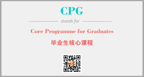 上述内容是“Core Programme for Graduates”作为“CPG”的缩写,解释为“毕业生核心课程”时的信息,以及英文缩略词CPG所代表的英文单词,其对应的中文拼音、详细解释以及在英文中的流行度和相关分类、应用领域及应用示例等。