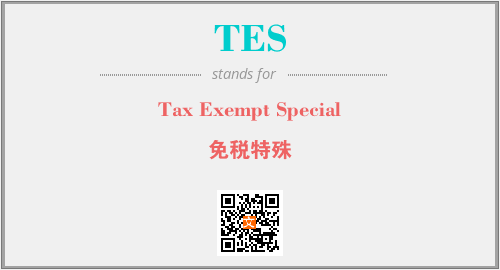 英文缩略词“TES”经常作为“Tax Exempt Special”的英文缩写来使用,中文表示:“免税特殊”。本文将详细介绍英文缩写词TES所代表英文单词,其对应的中文拼音、详细解释以及在英语中的流行度。此外,还有关于缩略词TES的分类、应用领域及相关应用示例等。