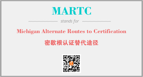 上述内容是“Michigan Alternate Routes to Certification”作为“MARTC”的缩写,解释为“密歇根认证替代途径”时的信息,以及英文缩略词MARTC所代表的英文单词,其对应的中文拼音、详细解释以及在英文中的流行度和相关分类、应用领域及应用示例等。