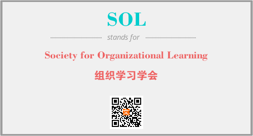 英文缩略词“SOL”经常作为“Society for Organizational Learning”的英文缩写来使用,中文表示:“组织学习学会”。本文将详细介绍英文缩写词SOL所代表英文单词,其对应的中文拼音、详细解释以及在英语中的流行度。此外,还有关于缩略词SOL的分类、应用领域及相关应用示例等。