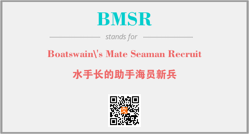 以上为Boatswain\'s Mate Seaman Recruit英文缩略词BMSR的中文解释,以及该英文缩写在英语的流行度、分类和应用领域方面的信息。