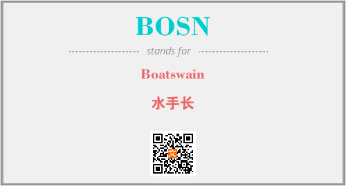 英文缩略词“BOSN”经常作为“Boatswain”的英文缩写来使用,中文表示:“水手长”。本文将详细介绍英文缩写词BOSN所代表英文单词,其对应的中文拼音、详细解释以及在英语中的流行度。此外,还有关于缩略词BOSN的分类、应用领域及相关应用示例等。